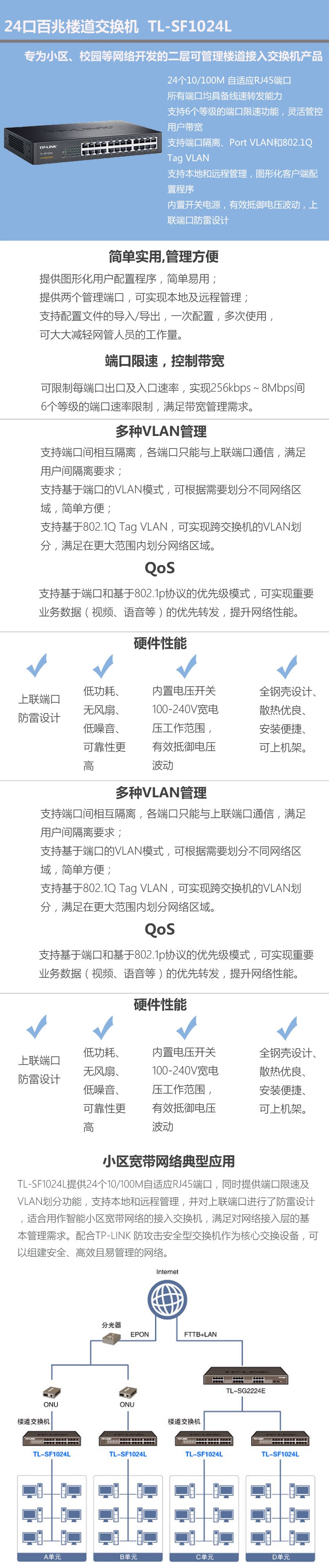 - 商品名稱:TP-LINK TL-SF1024L 24口樓道交換機