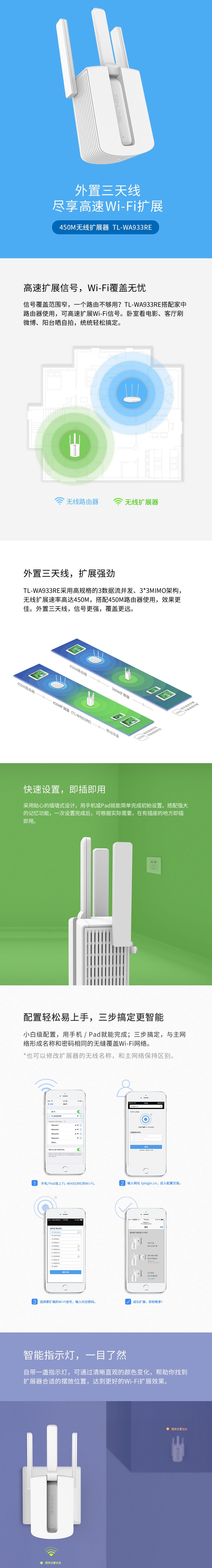 - 商品名稱:TP-LINK TL-WA933RE 450M三天線wifi信號放大器 無線擴展器中繼器 家用路由器無線信號增強器