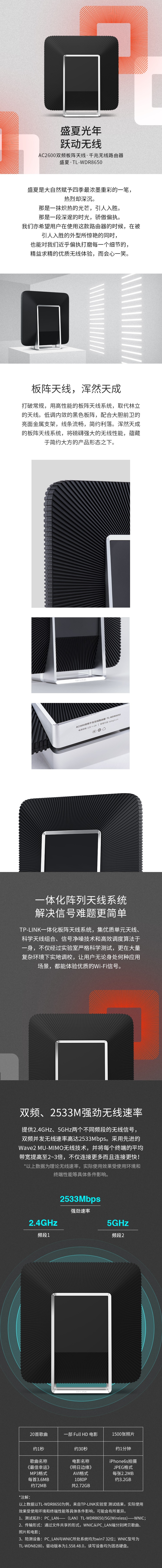 - 商品名稱:TP-LINK雙千兆路由器 盛夏·TL-WDR8650 雙頻無線AC2600 千兆端口大戶型穿墻 板陣天線智能路由