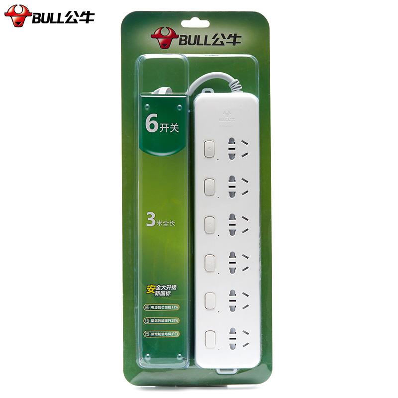 - 商品名稱:公牛插座 分控電源轉(zhuǎn)換器 獨立開關(guān)控制拖線板 過載保護 插排插板接線板插座 帶兒童保護門 313 6位分控開關(guān)全長3米 全長3米