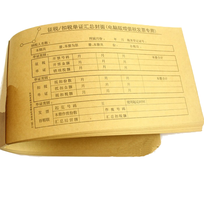 青聯(lián)電腦征稅/扣稅憑證封面 201-2(11開,25張/刀)