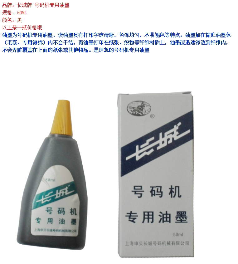 - 商品名稱:長城號碼機專用油墨 黑色(50ml/瓶,10瓶/封)