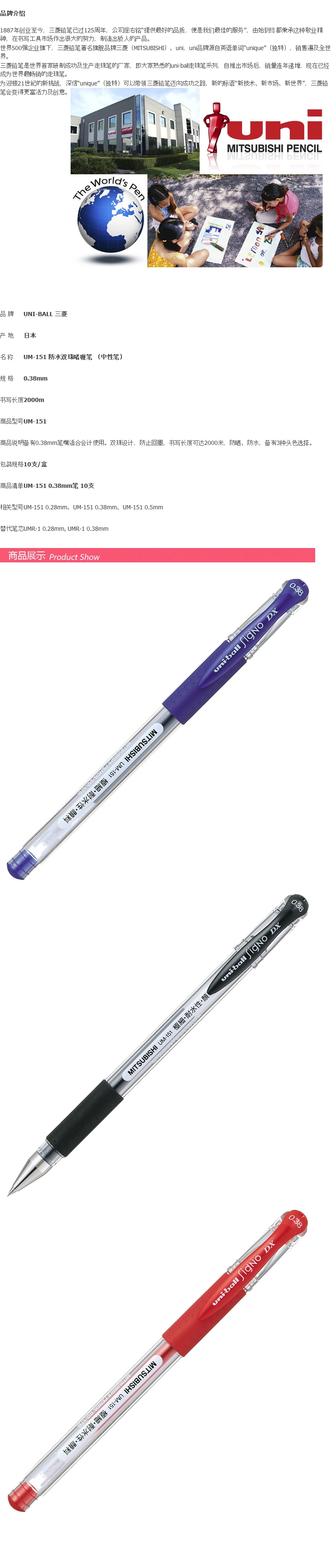 - 商品名稱:三菱 UM-151 0.38mm中性筆(適用三菱UMR-1A筆芯 0.38mm,黑色,10支/盒)