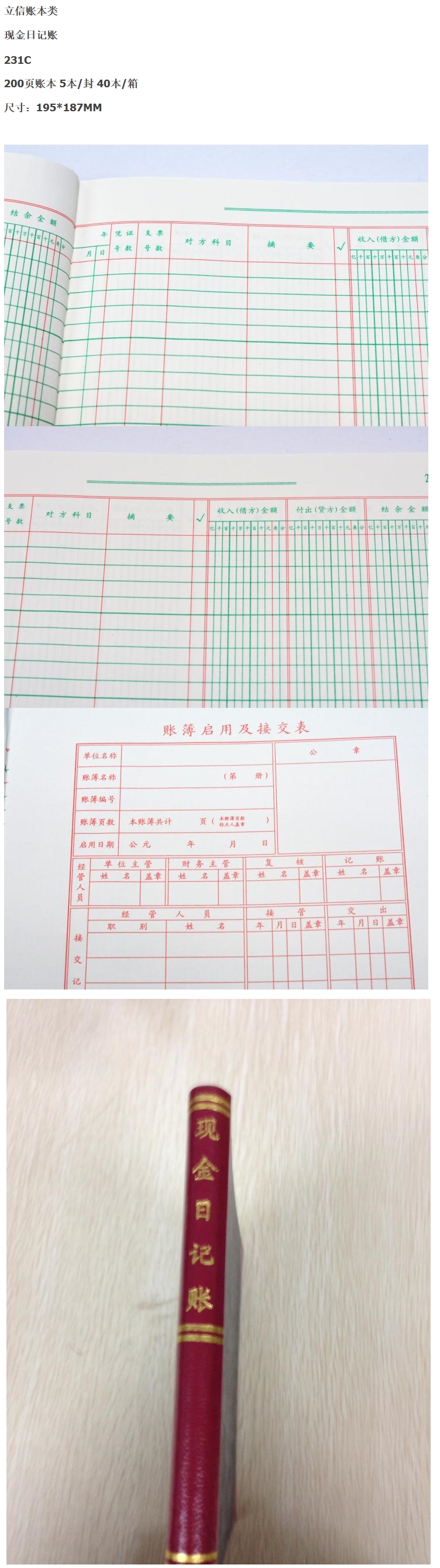 立信現(xiàn)金日記賬 231-C(24開,200頁/本)