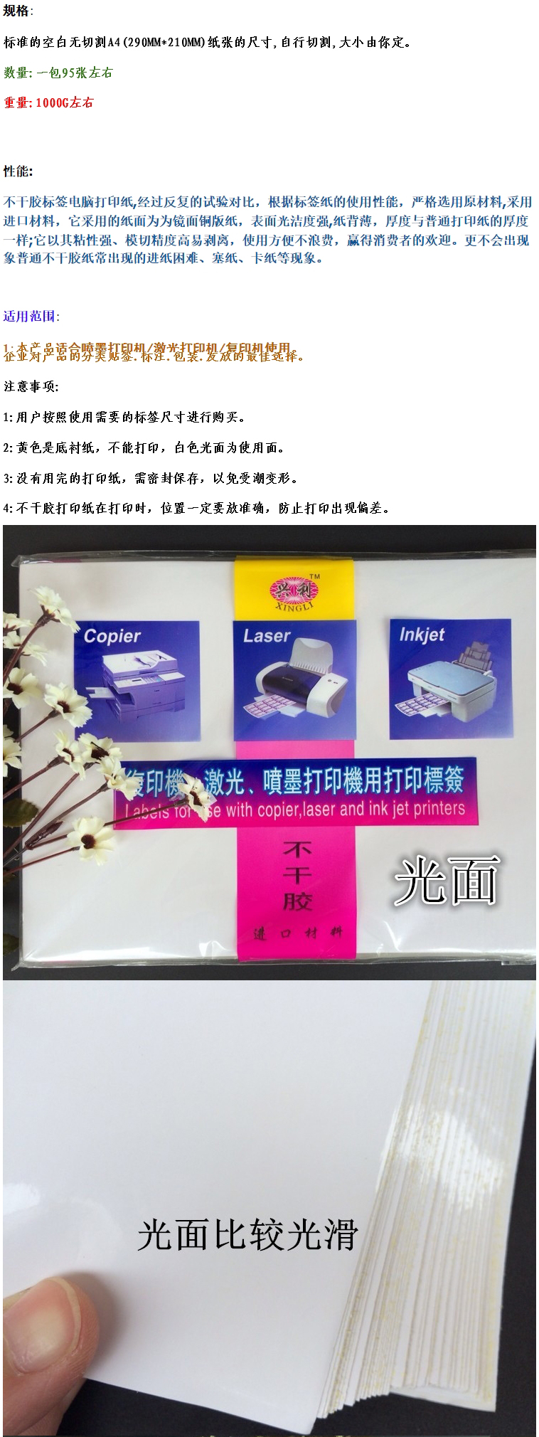 • 商品名稱:興利A4不干膠 高光 (210*297mm,約100張/包)