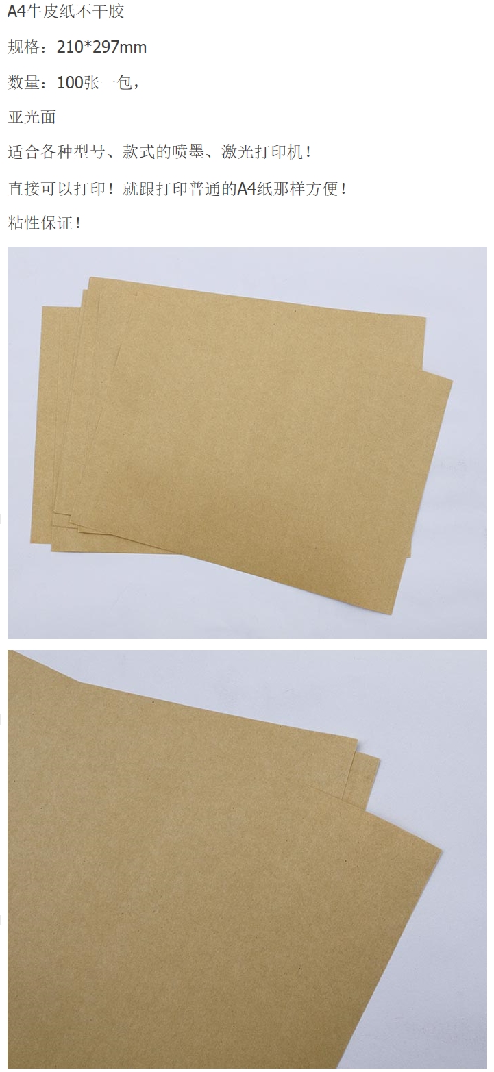 • 商品名稱:興利A4牛皮紙不干膠(210*297mm,約100張/包)