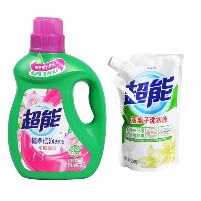 - 商品名稱(chēng):超能抗靜電洗衣液 套裝(1.5kg/瓶+500g/袋,6套/箱)