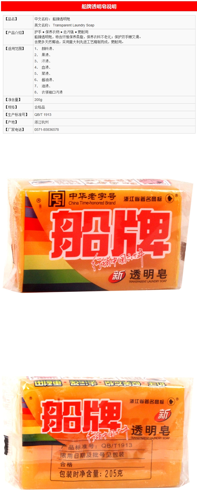 • 商品名稱:船牌透明皂(205g,40塊/箱)