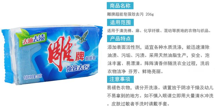 • 商品名稱:雕牌強(qiáng)效去污漬去油超能皂(206g/塊,48塊/箱)