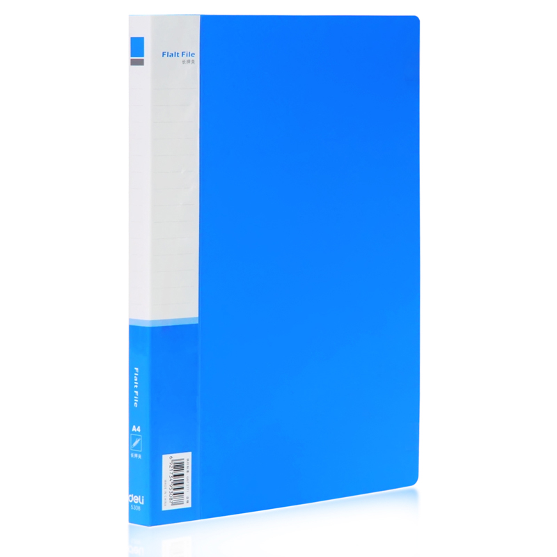 得力(deli) 5308 PP文件夾/長押夾+插袋A4 (藍色,12只/箱)
