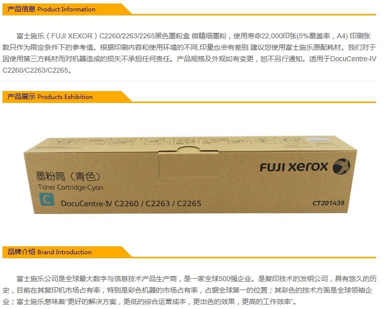 - 商品名稱:原裝富士施樂(FUJI XEROX)2260復印機墨粉筒 青色(Toner Cartidge-Cyan)