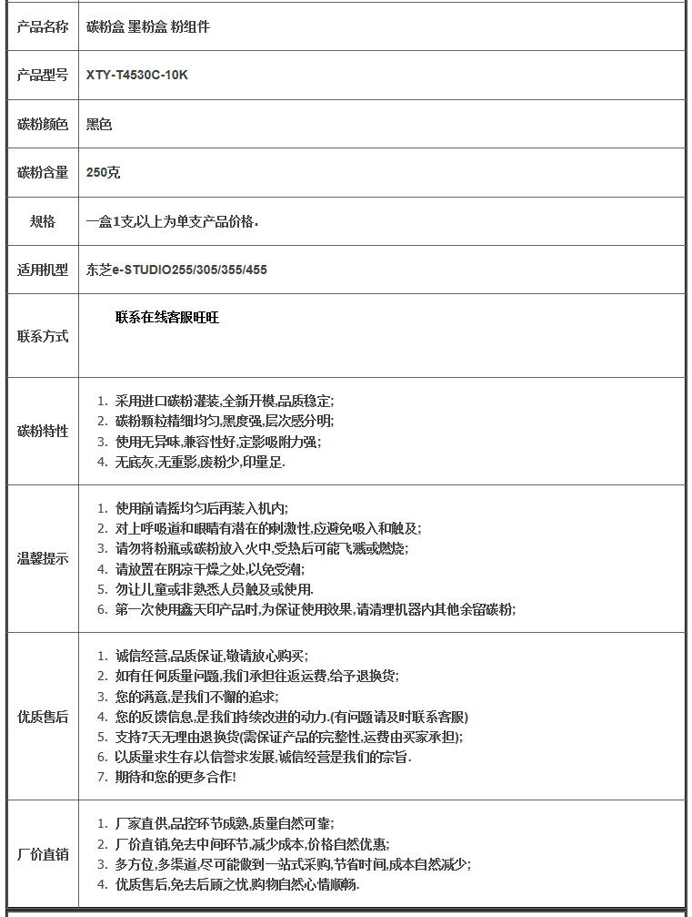 - 商品名稱:原裝東芝(TOSHIBA)4530C-10K復(fù)印機(jī)墨粉 190g小容量 255/305/355/455