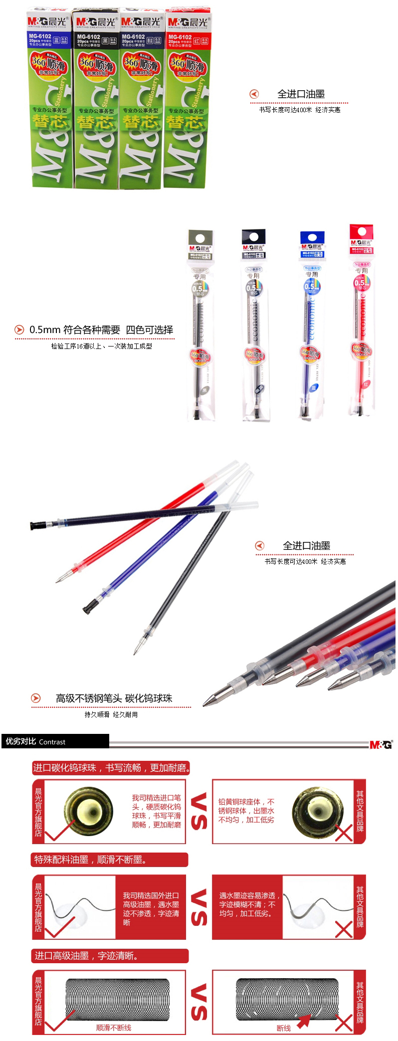 - 商品名稱:晨光 MG-6102 0.5mm子彈頭中性筆芯(藍色,20支/盒)按盒售