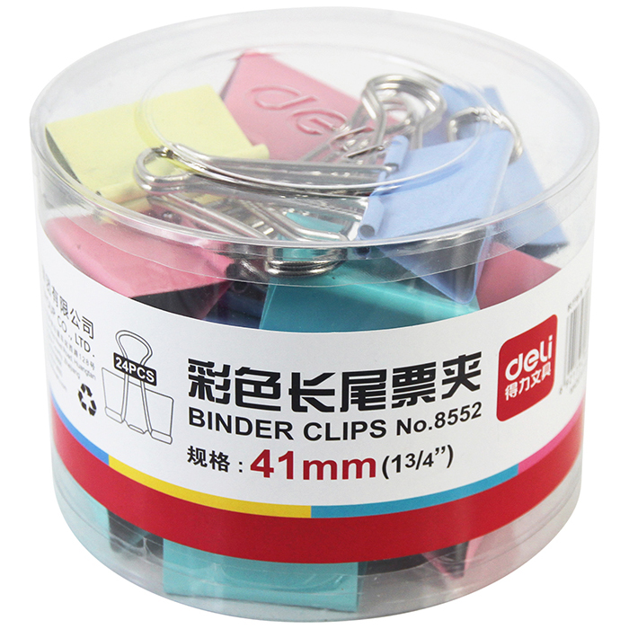 - 商品名稱:嚴采/得力(deli)筒裝長尾票夾彩色 41mm 2# 8552(24只/筒,36筒/件)