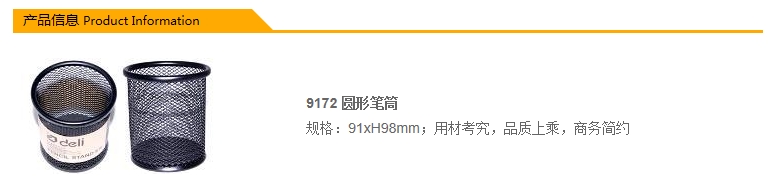 - 商品名稱:得力(deli)9172 圓形鐵絲網(wǎng)狀筆筒