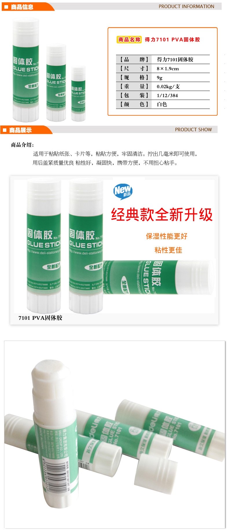 - 商品名稱:得力(deli)PVA固體膠 9g 7101(12支/盒)