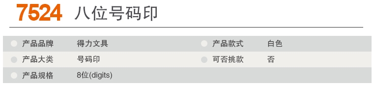 - 商品名稱:得力(deli)八位號(hào)碼印 7524(12個(gè)/盒)