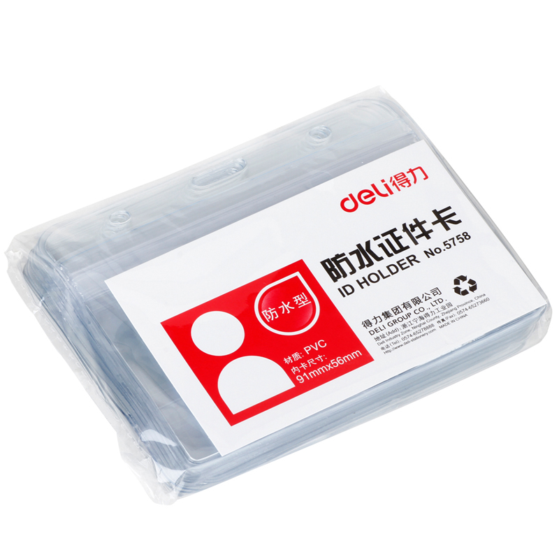 - 商品名稱:得力(deli)PVC透明防水橫式證件卡 5758(10個/包;10包/盒)按包售