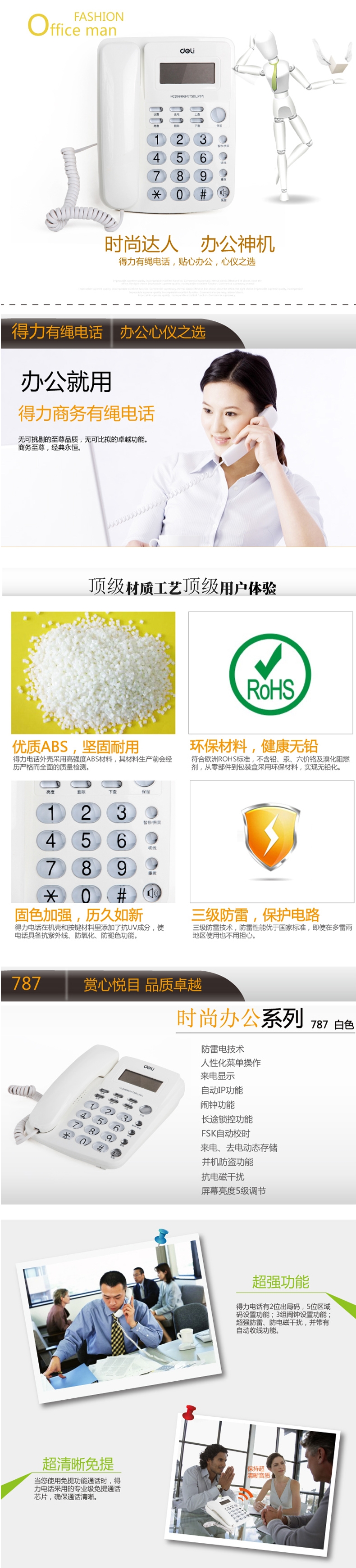 - 商品名稱:得力(deli) 787 來電顯示辦公家用電話機(jī)/固定電話/座機(jī) 水晶按鍵