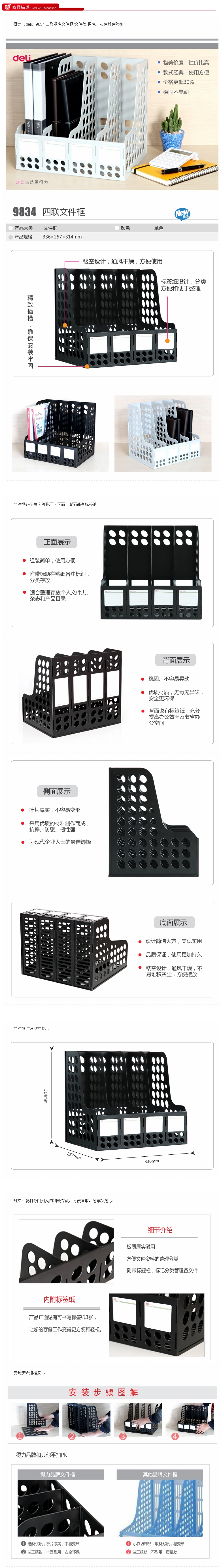 - 商品名稱:得力(deli) 9834 四欄文件欄 黑色(12只/箱)