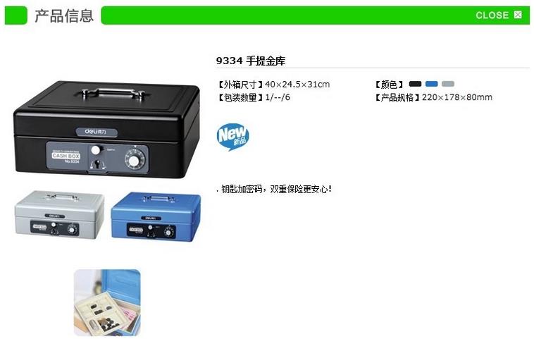 - 商品名稱:得力(deli)9334 手提金庫(規(guī)格:220*178*80mm;密碼保護)大號