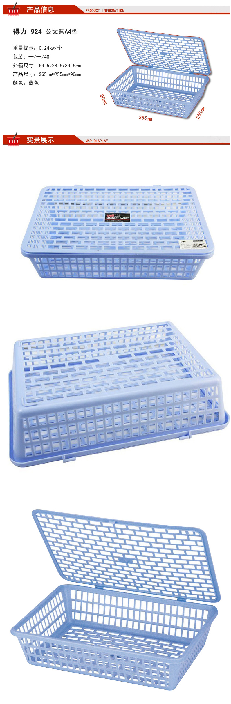 - 商品名稱:得力(deli) 924 公文籃 藍色(40只/箱)