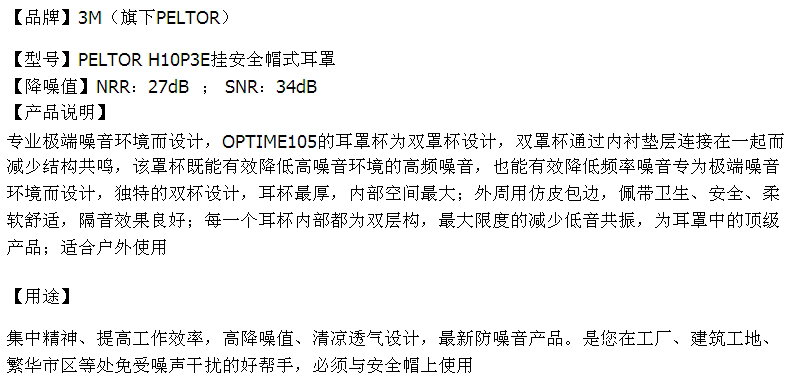 - 商品名稱:3M PELTOR?H10P3E掛安全帽式耳罩