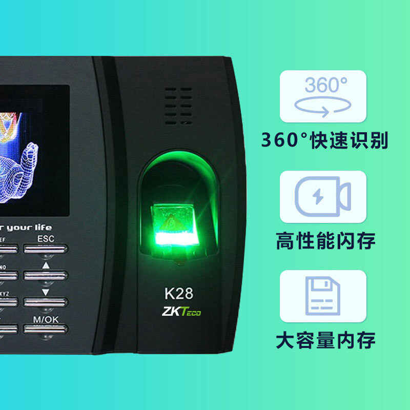 • 商品名稱:ZKTeco/中控智慧K28指紋考勤機 免軟件簽到彩屏打卡機 自助報表
