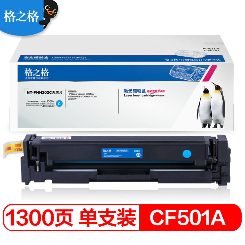 - 商品名稱(chēng):格之格 CF500A硒鼓適用惠普M281FDW硒鼓 M254DW M280NW 202A青色不帶芯片打印機(jī)硒鼓