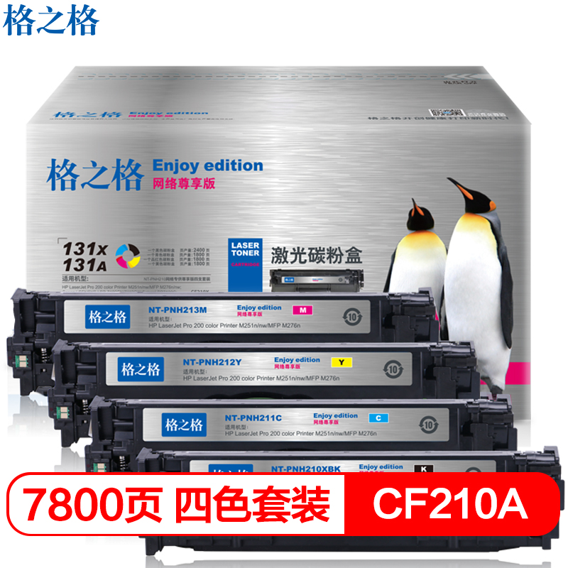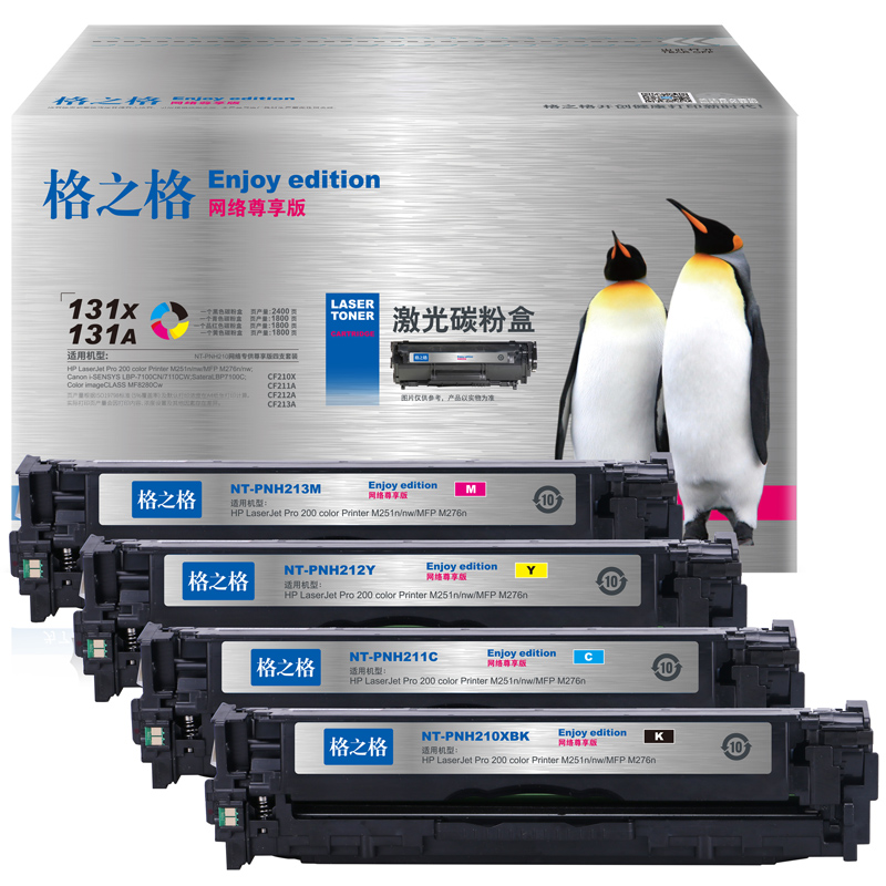 - 商品名稱(chēng):格之格CF210A四色套裝NT-PNH210尊享版四支裝適用惠普HP M251n M251nw M276n佳能LBP-7100CN粉盒hp131A硒鼓