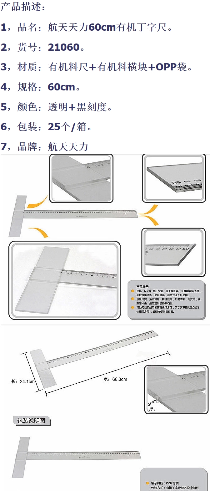• 商品名稱:航天有機丁字尺 60cm 21060