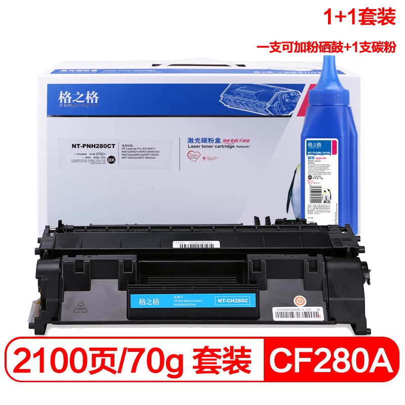- 商品名稱:格之格80A易加粉硒鼓+碳粉NT-PNH280CT帶芯片適用惠普HP400 M401和400 M425MFP系列打印機粉盒hpCF280A硒鼓