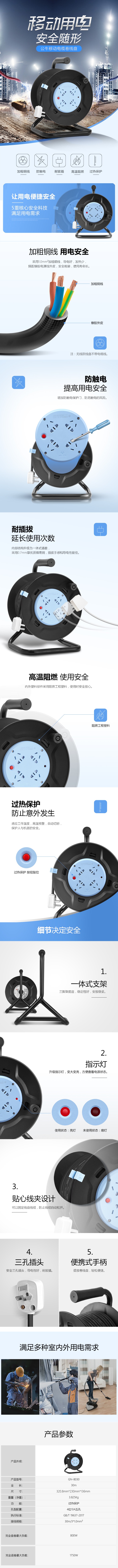 - 商品名稱:公牛(BULL) 卷線盤/工程接線/移動電纜電線盤/無線10米20米30米50米工地盤插 GN-8030 30M1平方