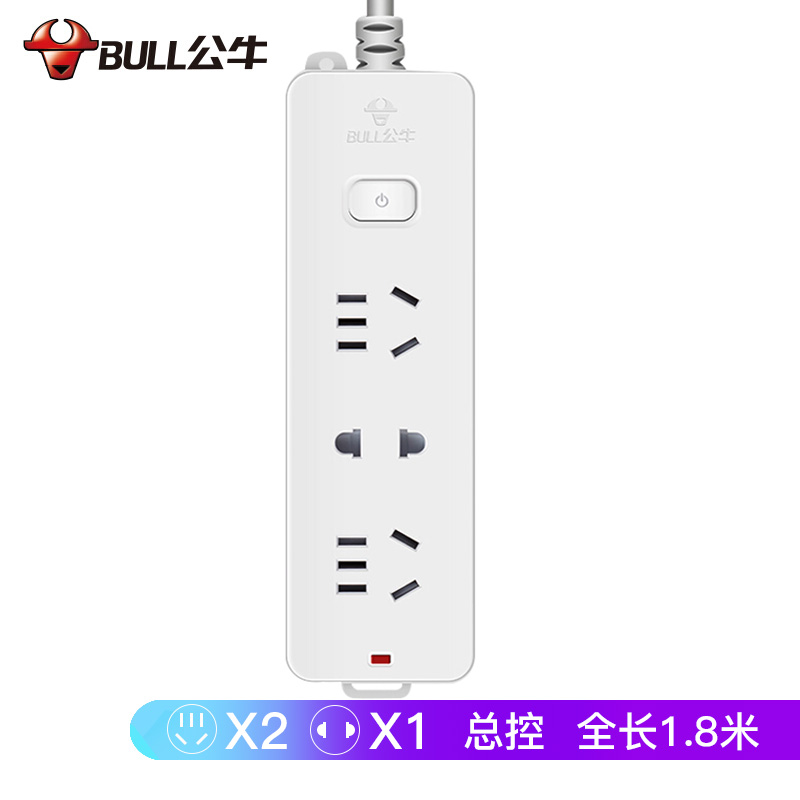 - 商品名稱:公牛(BULL) 插座 帶兒童保護(hù)門/新國標(biāo)插座/排插/插排/拖線板/接線板/插板 GN-210 三位總控全長1.8M