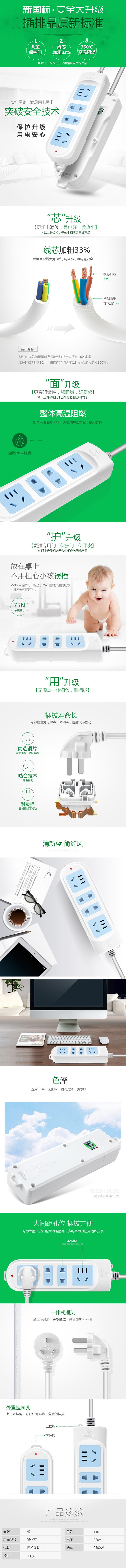 - 商品名稱: 公牛(BULL)新國標(biāo)插座/插線板/插排/排插/接線板/拖線板 4位無開關(guān)全長3米 GN-101