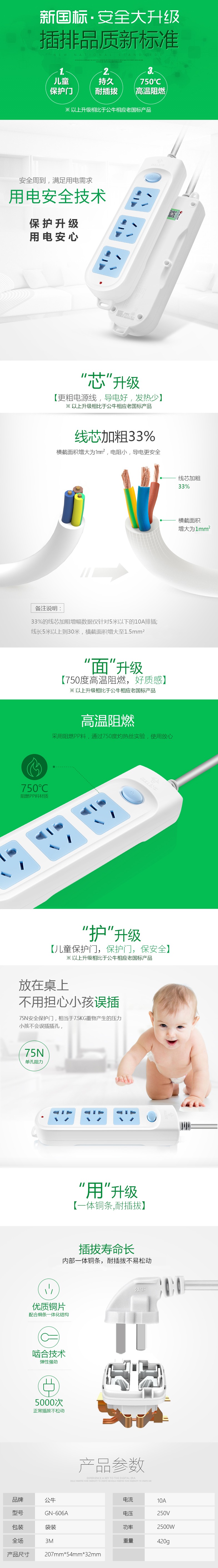- 商品名稱:公牛開關(guān)插座帶兒童保護門 三位帶總控開關(guān)電源接線板插排插線板 新國標(biāo)插座GN-606A 三位總控-1.8米