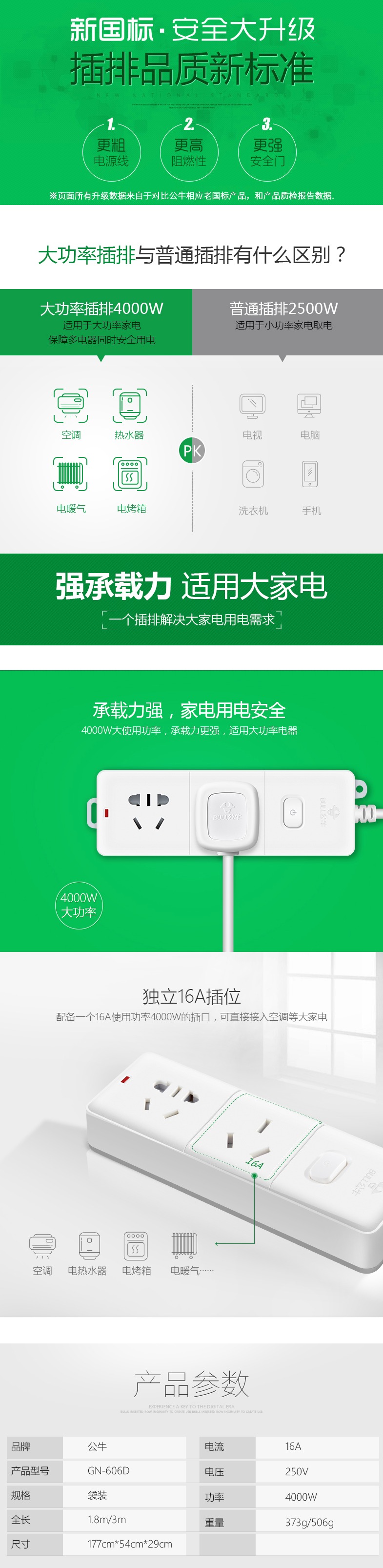 - 商品名稱:公牛大功率空調(diào)10a轉(zhuǎn)16a插座轉(zhuǎn)換插頭轉(zhuǎn)換器插排延長線插線板插排接線板拖線板熱水器GN-606D 三位總控-3米