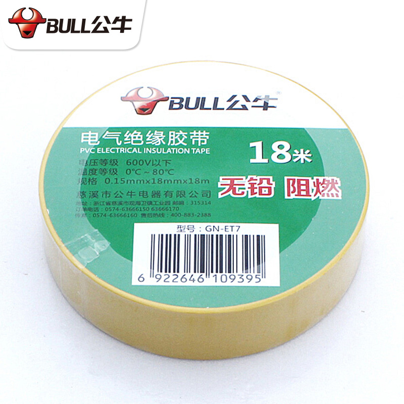 - 商品名稱:公牛(BULL) 電工膠布 電工絕緣膠帶黑色紅色黃色膠帶阻燃耐低溫電工PVC膠布批發(fā) 18米長電工膠帶