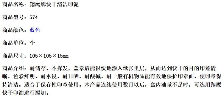 - 商品名稱:工字快干清潔印泥(藍(lán)) 574(10個(gè)/盒)