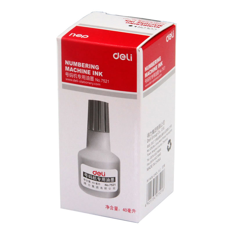 - 商品名稱:得力(deli)號碼機專用油墨 黑色 7521(40ml/瓶,12瓶/盒)