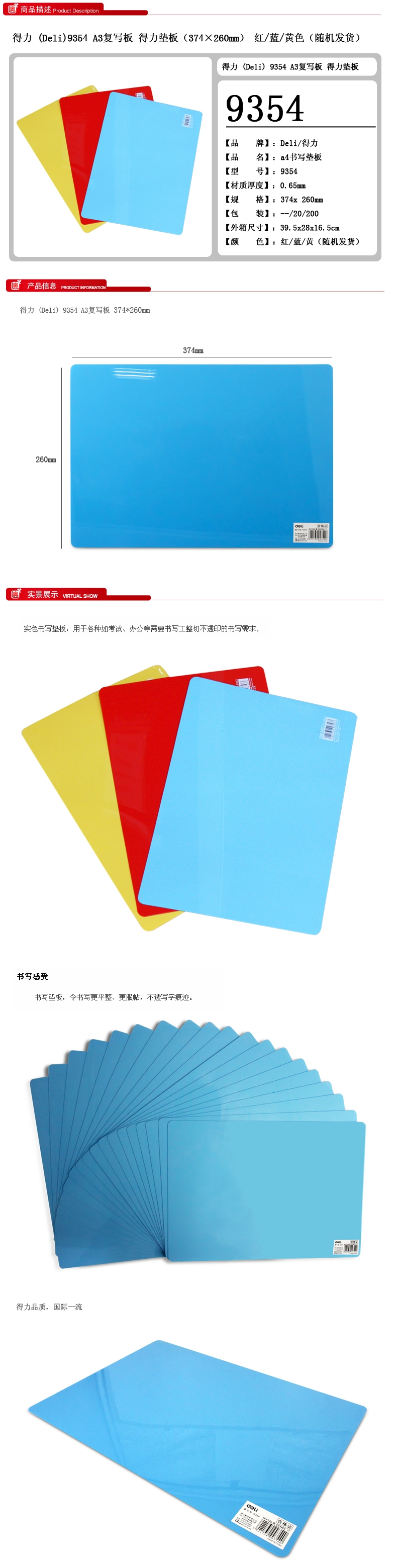 • 商品名稱:得力(deli)復寫板 A3 9354(374*260mm,20塊/包)