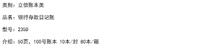• 商品名稱:立信銀行存款日記賬 235-D丙(24開,100頁(yè)/本)