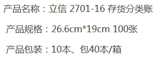 - 商品名稱:立信存貨分類賬 數(shù)量金額式 2701-16(16開,100張/封)