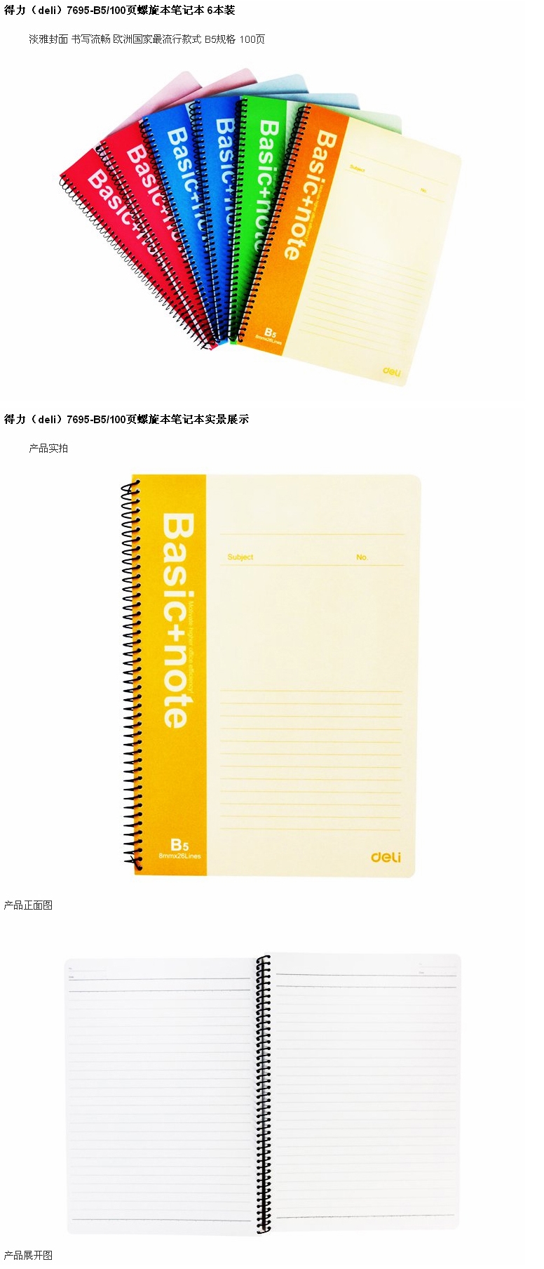 - 商品名稱(chēng):得力(deli)螺旋筆記本 100頁(yè) B5 7695